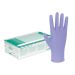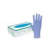 Latexfreier Untersuchungshandschuhe aus Nitril, blau, puderfrei, mikroraue Oberfläche mit Rollrand.